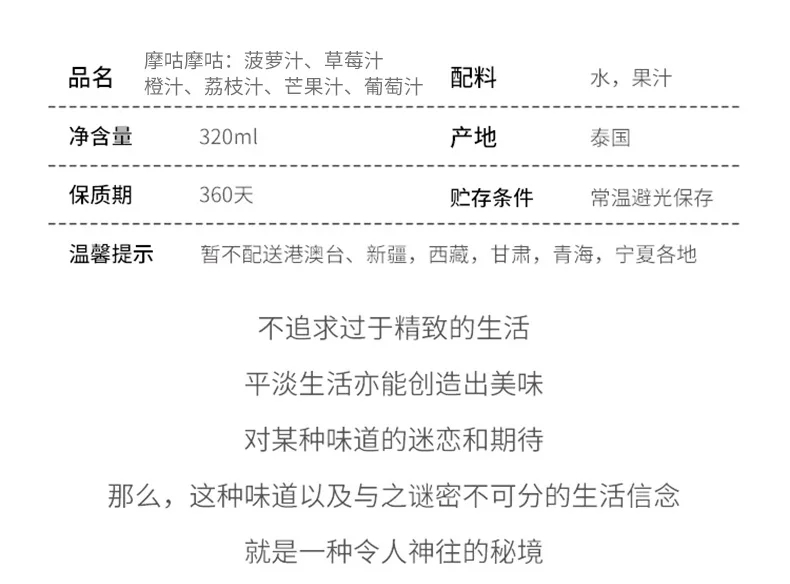 泰国MOGU摩咕摩咕果粒果汁【葡萄味Grape】320ml