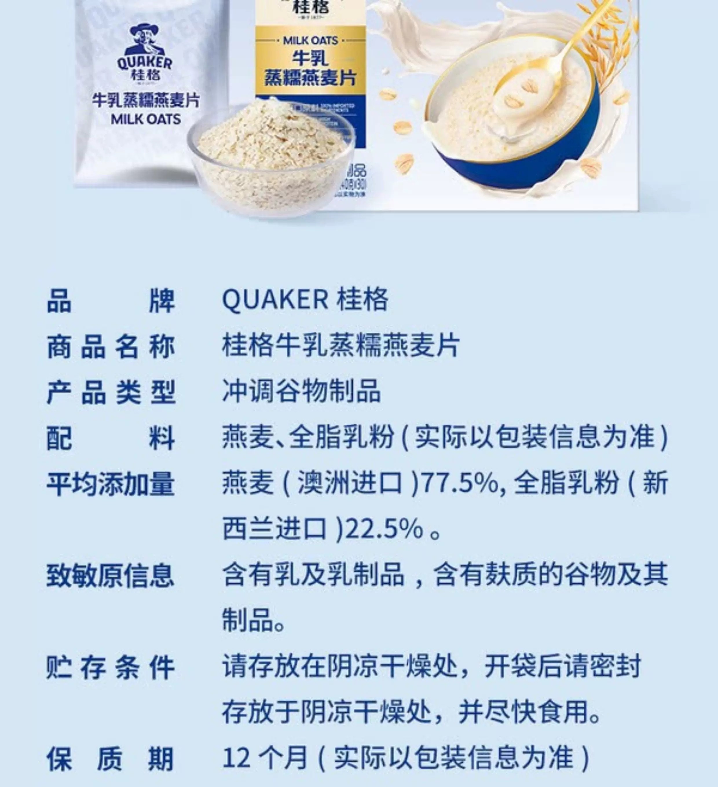 【特】桂格 牛乳蒸糯燕麦片1.2kg(40gx30)BBD29/05/2026